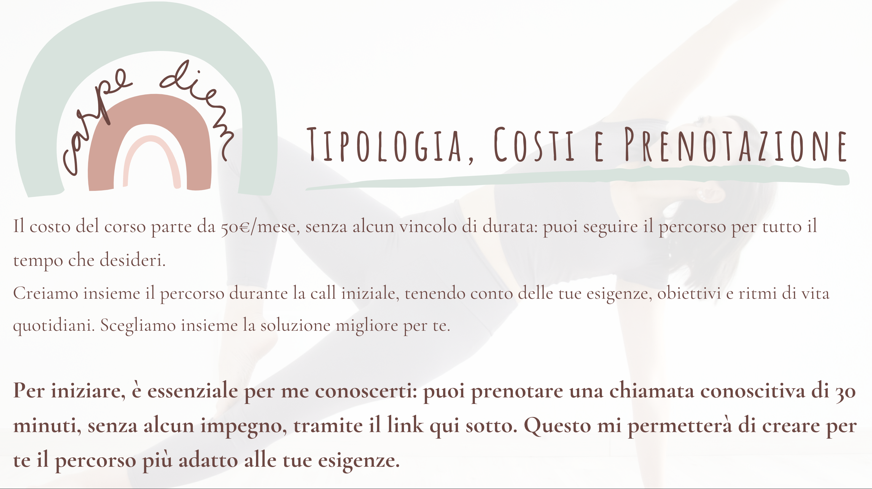 Creiamo insieme il percorso durante la call iniziale, tenendo conto delle tue esigenze, obiettivi e ritmi di vita quotidiani. Scegliamo insieme la soluzione migliore per te.