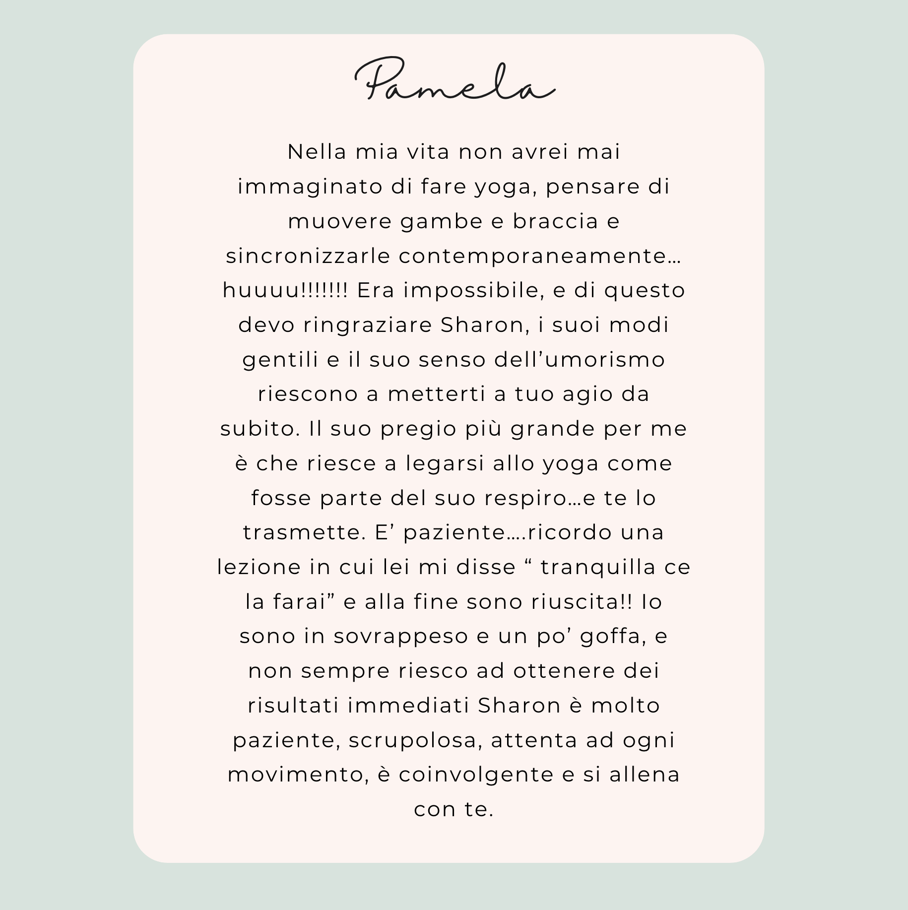 Mi chiamo Sharon e il mio viaggio è iniziato nel 2019 quando ho abbandonato uno stile di vita convenzionale per dare vita a Foglia Yoga. Con una laurea in Scienze delle Attività Motorie e Sportive e una specializzazione in yoga e pilates, mi sono dedicata a creare un’esperienza di pratica personalizzata per ogni umano che desidera camminare insieme a me.